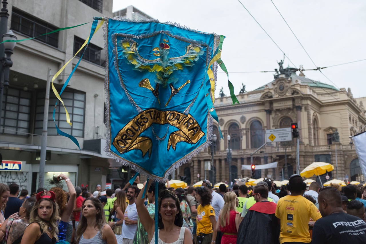 Desfilando pela segunda vez nas ruas da capital paulista, a banda Orquestra Voadora apresentou ao público de São Paulo releituras de hits e clássicos da música mundial em ritmo de marchinhas. Com produção do coletivo Pipoca, o desfile foi realizado neste domingo, dia 18, e levou foliões ao centro da cidade.
