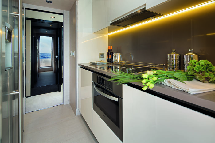 Janelas do chão ao teto no pavimento principal e vidros inteiriços na cabine do proprietário. Essas são algumas das inovações em design aplicadas pela Azimut Yachts no seu novo modelo de 74 pés. A Azimut 74, com mais de 22,5 metros de comprimento, recebeu essas novas características justamente por possuir em parte de sua estrutura fibra de carbono 100% pura. O uso do material reduziu em cerca de 30% o peso da estrutura do iate além de melhorar a sua estabilidade. Possui uma área aproximada de 225 m² divida em 3 pavimentos com 4 suítes. O salão principal conta com cozinha integrada, sala de jantar, sala de estar e posto de comando. Seu flybridge é mais um espaço para receber familiares e convidados. Com cerca de 40m² possui áreas de relaxamento, espaço gourmet, bar, uma grande mesa para refeições e um segundo posto de comando. A proa conta com grandes almofadas para banhos de sol e sofá com capacidade para até seis pessoas. Revestimentos e mobiliários que trazem a excelência italianada aliados a equipamentos de navegação de última geração são mais características.