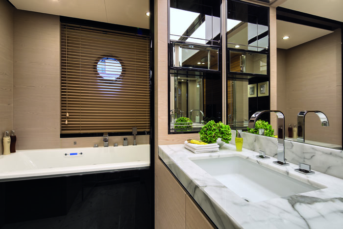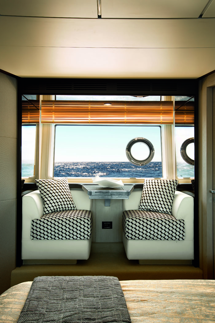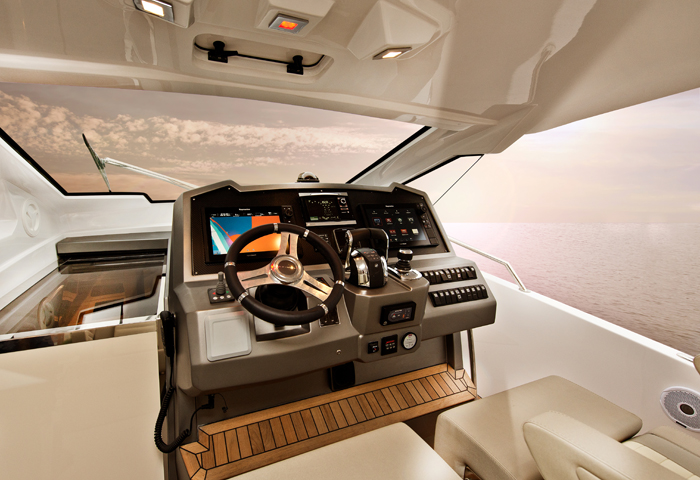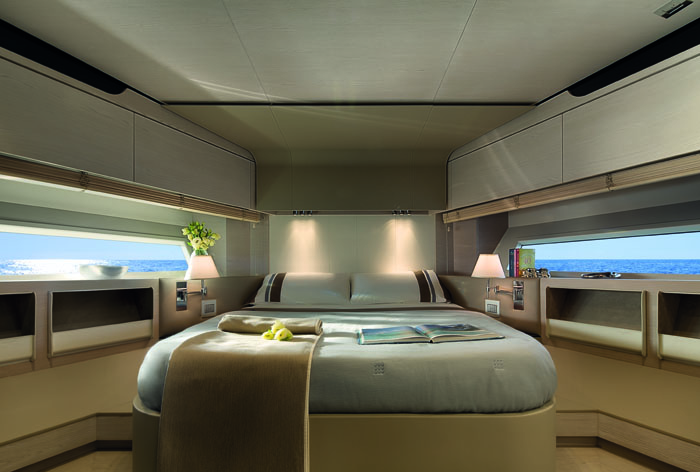 Janelas do chão ao teto no pavimento principal e vidros inteiriços na cabine do proprietário. Essas são algumas das inovações em design aplicadas pela Azimut Yachts no seu novo modelo de 74 pés. A Azimut 74, com mais de 22,5 metros de comprimento, recebeu essas novas características justamente por possuir em parte de sua estrutura fibra de carbono 100% pura. O uso do material reduziu em cerca de 30% o peso da estrutura do iate além de melhorar a sua estabilidade. Possui uma área aproximada de 225 m² divida em 3 pavimentos com 4 suítes. O salão principal conta com cozinha integrada, sala de jantar, sala de estar e posto de comando. Seu flybridge é mais um espaço para receber familiares e convidados. Com cerca de 40m² possui áreas de relaxamento, espaço gourmet, bar, uma grande mesa para refeições e um segundo posto de comando. A proa conta com grandes almofadas para banhos de sol e sofá com capacidade para até seis pessoas. Revestimentos e mobiliários que trazem a excelência italianada aliados a equipamentos de navegação de última geração são mais características.
