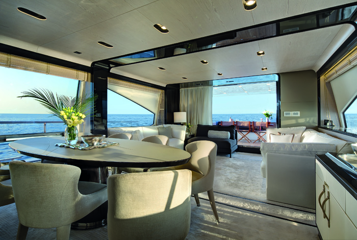 Um dos maiores modelos construídos pela Azimut Yachts no Brasil, a Azimut 83 também surpreende devido à sua elegância e conforto. A embarcação com 25,2 metros de comprimento está dividida em 3 pavimentos totalmente equipados e decorados no melhor estilo “Made in Italy”. Possui 4 suítes sendo uma delas com hidromassagem além de salão principal com sala de jantar, estar, cozinha e posto de comando principal. O espaço exterior da embarcação também é igualmente equipado e projetado para garantir momentos agradáveis a bordo. Seu flybridge possui 42m² com jacuzzi, posto de comando secundário, teto retrátil e generosos espaços de descanso e refeições. Possui ainda lounge para banhos de sol na proa, além de uma praça de popa ampla e equipada para lazer e também refeições.