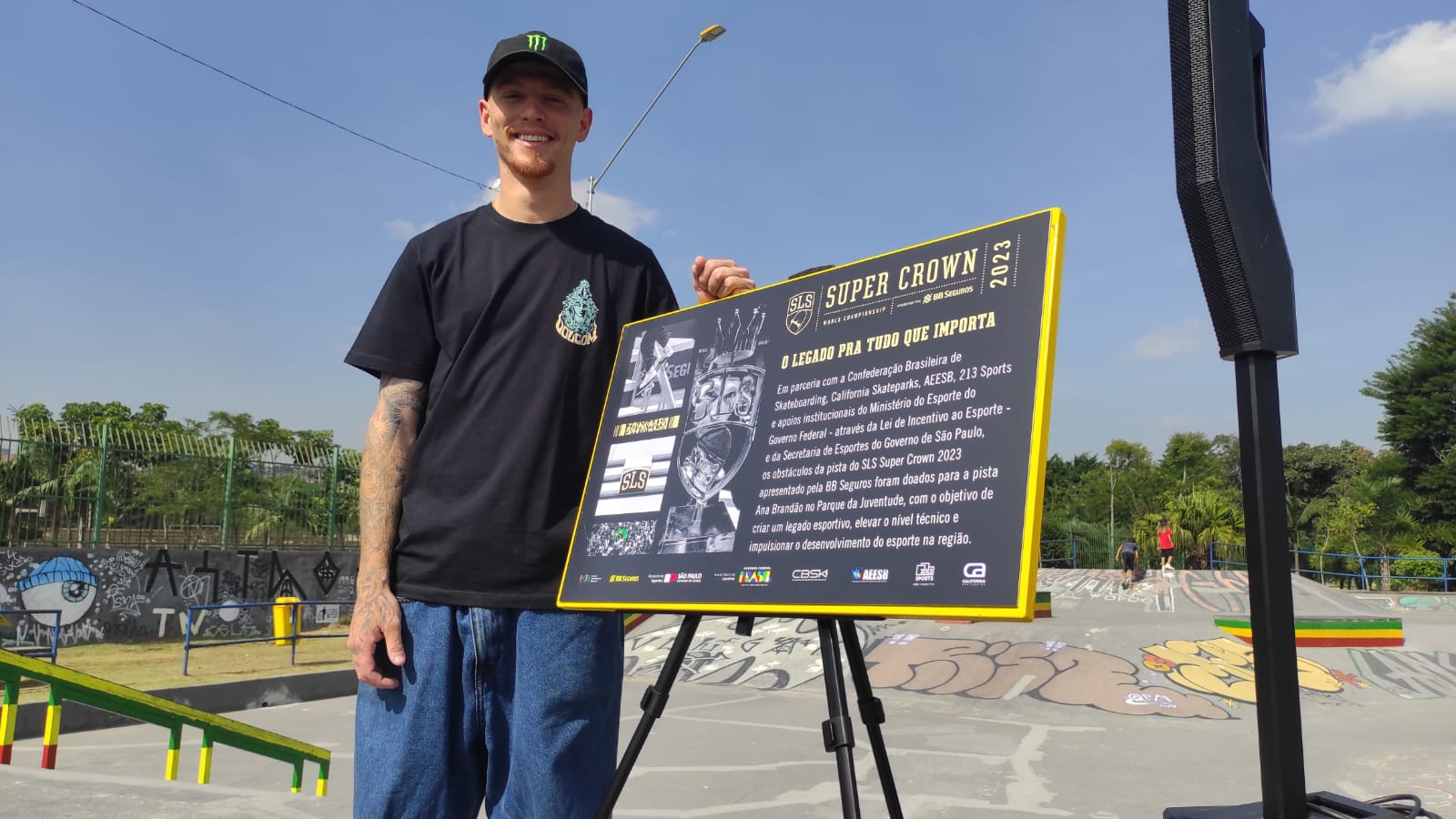 O atual campeão mundial da Street League Skateboarding Giovanni Vianna participou nesta sexta-feira, dia 3, da cerimônia de entrega oficial dos obstáculos utilizados na pista do SLS Super Crown World Championship 2023 apresentado pela BB Seguros à Pista de Skate Ana Brandão, localizada no Parque da Juventude de Santo André. Giovanni, que é natural de Santo André, estreou os obstáculos profissionais que o sagraram campeão mundial na pista onde aprendeu a andar de skate, aos 4 anos de idade.