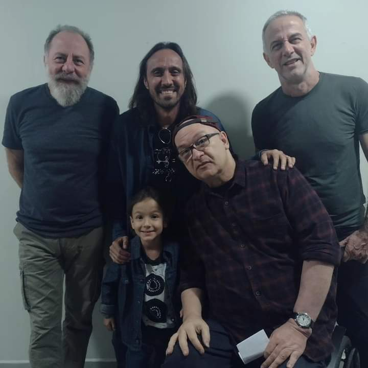 Cristhiano Lelé e seu filho Herbert Almeida Lelé ao lado dos idolos da banda Paralamas do Sucesso – Divulgação |