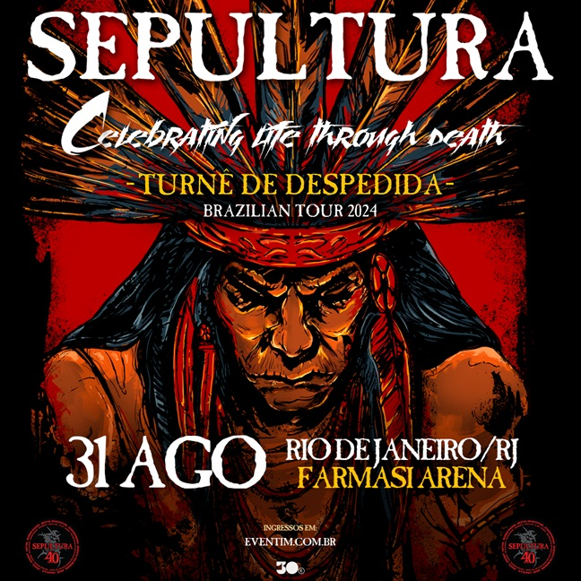 No fim de 2023, o Sepultura anunciou que pararia suas atividades, porém, antes disso, o grupo resolveu rodar o globo com uma tour de despedida intitulada “Celebrating life through death”, uma realização da 30e. Os músicos estão de volta ao Brasil, depois de uma passagem por países da América Latina e da Europa, e anunciam uma apresentação no Rio de Janeiro, na Farmasi Arena, no dia 31 de agosto. A venda de ingressos começa no dia 18 de junho ao meio-dia, no site da Eventim.