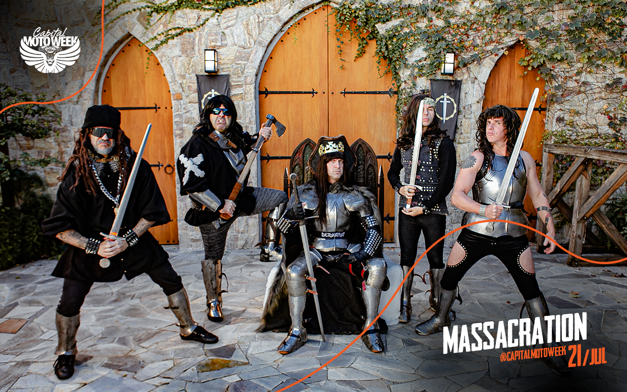 Os deuses do metal interromperam suas atividades supremas no universo para mais uma novidade no line up do Capital Moto Week. O Massacration acaba de ser confirmado e levará o peso das guitarras e a leveza do humor para o palco principal do maior festival de motos e rock da América Latina. A banda tocará no dia 21 de julho, data dedicada ao metal, e dividirá o palco com outros três grupos, incluindo o Sepultura, que faz sua turnê de despedida. Para garantir seu ingresso (e umas boas risadas), acesse o site da Bilheteria Digital.