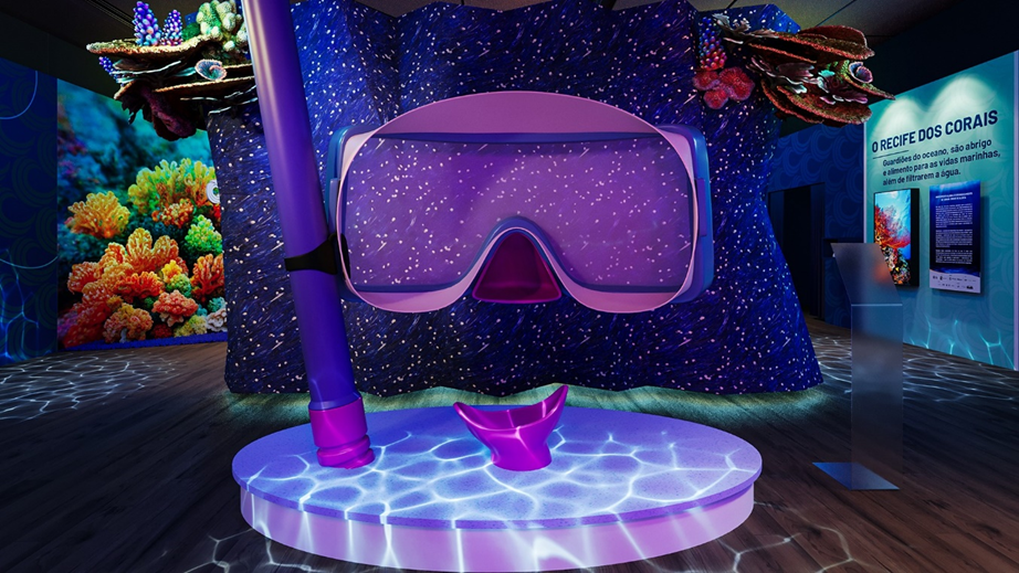 A exposição está dividida em nove estações de experiências imersivas e audiovisuais para encantar e inspirar os visitantes, além de alertar sobre a poluição plástica nos oceanos