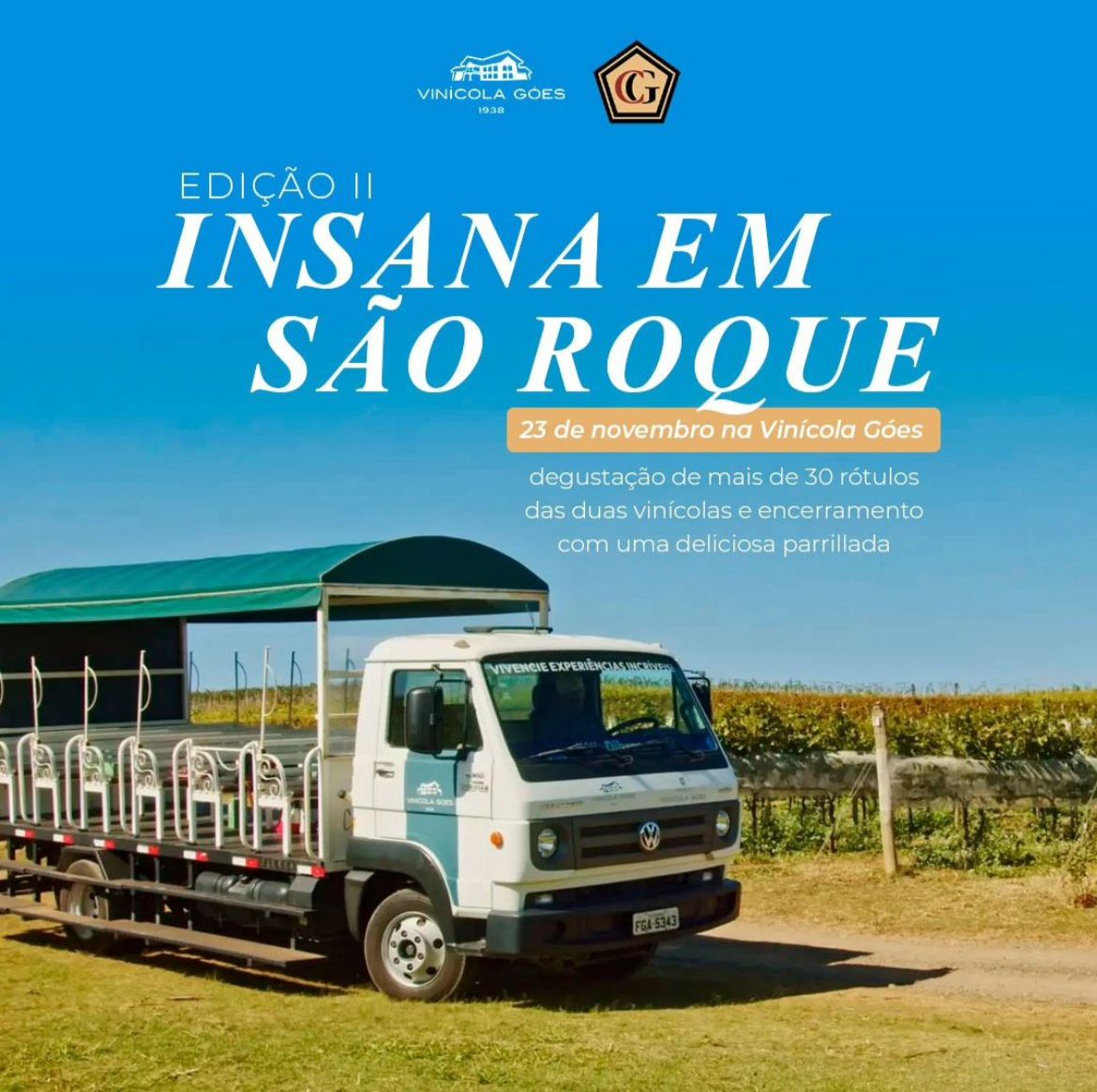 A Vinícola Góes recebe a segunda edição do INSANA, após o grande sucesso na Casa Geraldo, o evento exclusivo reúne amantes do vinho, música e gastronomia em um só lugar, onde os participantes terão a oportunidade de vivenciar uma experiência sensorial inesquecível, com degustação de aproximadamente 30 rótulos de vinhos cuidadosamente selecionados, incluindo Gran Reservas e seleções exclusivas das vinícolas.