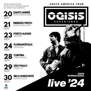 No dia 20 de novembro, o “Oeisis Experience Live ’24” se apresenta em Santo André, no Santo Rock Bar. No dia 21 de novembro, será a vez de Ribeirão Preto, no Hard Rock Café. A turnê segue para Porto Alegre no Opinião no dia 23 de novembro, e no dia 24 de novembro o show acontece em Florianópolis, no John Bull. No dia 28 de novembro, a apresentação será em Curitiba, no Tork N Roll. A penúltima parada será em São Paulo, no Terra SP, no dia 29 de novembro, e a turnê se encerra em Belo Horizonte, no Mister Rock, no dia 30 de novembro.