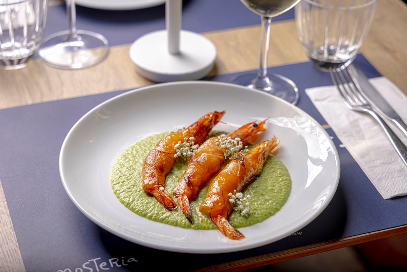 Para começar, como opções de entrada, o cliente poderá saborear a Focaccia messinese scomposta, composta por pedaços de focaccia com azeitonas, creme de queijo fresco, espuma de escarola e tomates-cereja confit, ou o delicado Spiedino di polpo, um espetinho de polvo cozido com ervas aromáticas.