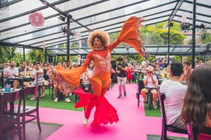 Experiência que combina gastronomia e performances artísticas em um ambiente acolhedor e descontraído. O evento proporciona ao público a oportunidade de desfrutar de um brunch enquanto assiste a shows de Drag Queens, promovendo representatividade e diversão em um espaço inclusivo. A cada edição, novos talentos sobem ao palco, criando um espetáculo único e diverso, celebrando a cultura drag de maneira vibrante. As apresentações são realizadas no Bourbon Music Street, na rua dos Chanés, 127, no bairro de Moema.