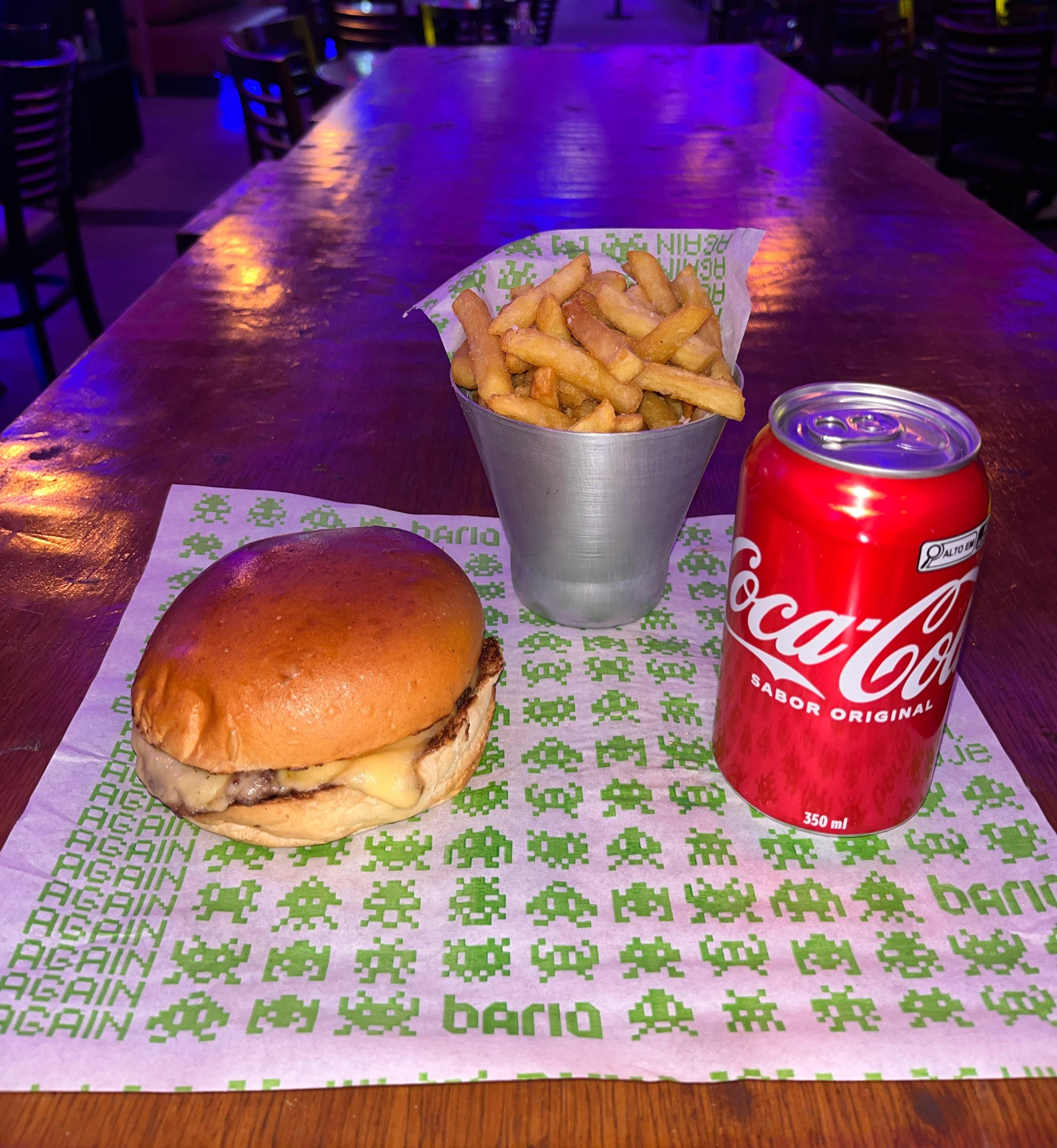 O X Hambúrguer e batata individual foram escolhidos para trazer à memória os sabores e nostalgia da gastronomia da época e para acompanhar refrigerante. Já para a diversão serão disponibilizados para os jogos 5 fichas válidas na unidade de Pinheiros ou R$30,00 em bônus no Tatuapé. São diversas máquinas de entretenimento, entre elas pinballs, simuladores e mesas de snooker que proporcionam ao público momentos inesquecíveis.