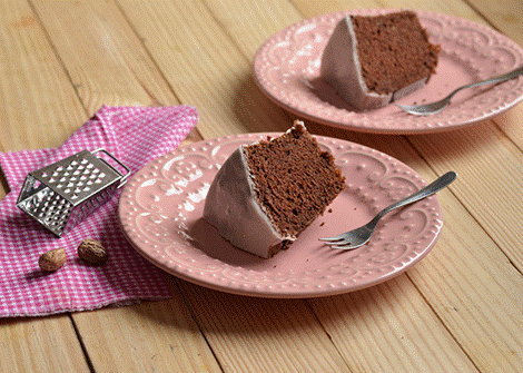 Em uma tigela, misture o açúcar, a noz-moscada e o suco até obter uma mistura homogênea. Regue o bolo frio com a cobertura e deixe secar. Sirva em seguida.