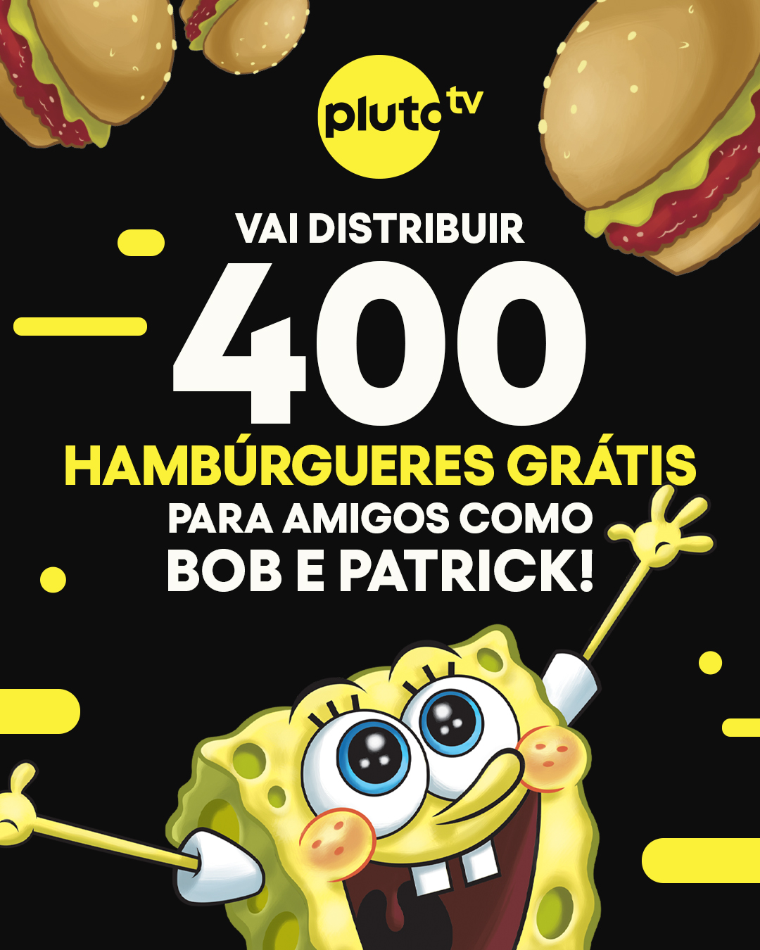 A Pluto TV, plataforma líder de streaming gratuito, na preparação para comemorar o Dia do Hambúrguer, distribuiu 400 combos de hambúrgueres Bob Esponja – Burguer & Restaurante, inspirado nos sabores icônicos da Fenda do Biquíni, em uma ação especial nas redes sociais para os fãs.