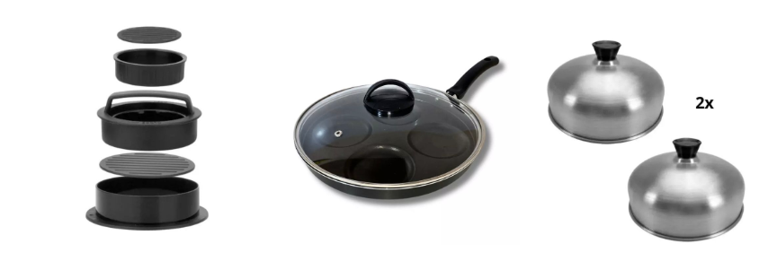 Um molde 3 em 1 para fazer discos de carne recheados e em tamanhos diversos sai por R$ 22,50. E que tal um abafador de hambúrguer para deixar o queijo derretido sem queimar a carne? Um kit com duas unidades de inox custa R$ 20,70. Já uma frigideira antiaderente própria para fritar hambúrgueres custa a partir de 43,20 e um belo paliteiro temático de cerâmica para deixar a mesa estilosa em formato de hambúrguer é vendido por 29,70.