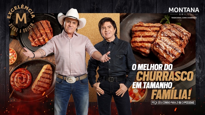 O Montana Grill, rede especializada em cortes selecionados de carne da Halipar (Holding de Alimentação e Participações), lança, a partir desta quarta-feira (24), “O Melhor do Churrasco em Tamanho Família”, que traz cinco opções de combos compartilhados, para duas e três pessoas, contendo diferentes tipos de proteínas. A ação será promovida no balcão e pelo delivery das mais de 120 lojas da franquia espalhadas pelo Brasil e integra da campanha “Excelência desde a origem”, lançada no início deste mês e que tem como protagonista a dupla Chitãozinho & Xororó.