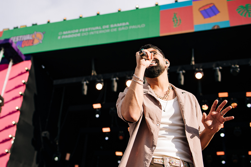 Encerrando a noite, Gloria Groove apresentou sua turnê Serenata da GG, unindo samba, performance e emoção em um show que embalou o público do início até o fim. “Como é bom voltar para esta cidade que me viu crescer. É uma honra uma Drag Queen como eu estar em um festival de pagode. Vocês imaginam o que é isso?”, interagiu GG, cantando na sequência a canção “Chamada Proibida” e muitas outras.