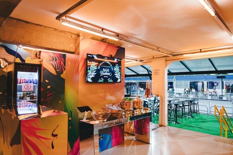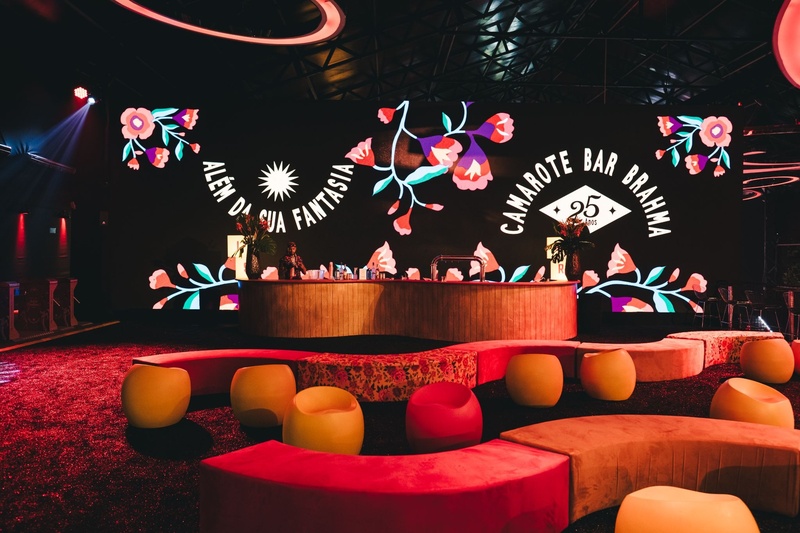 Ao longo dos quatro dias de evento, uma diversificação de bebidas à vontade está disponível para os foliões que adentram o camarote, com torneiras de chopp, gin, vodka, whisky, além de refrigerantes, energéticos e água. “Ter bebidas variadas à disposição a noite toda ajuda a manter o ritmo da festa sem quebrar a experiência”, diz Caire.